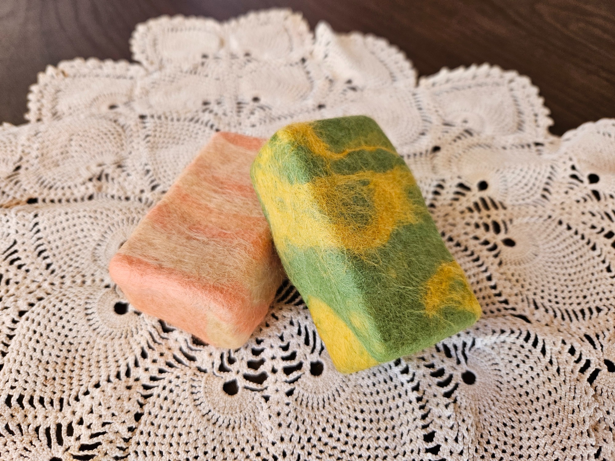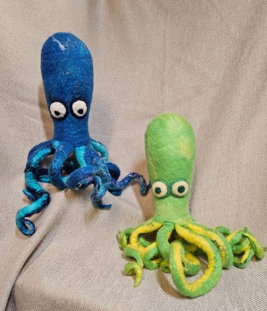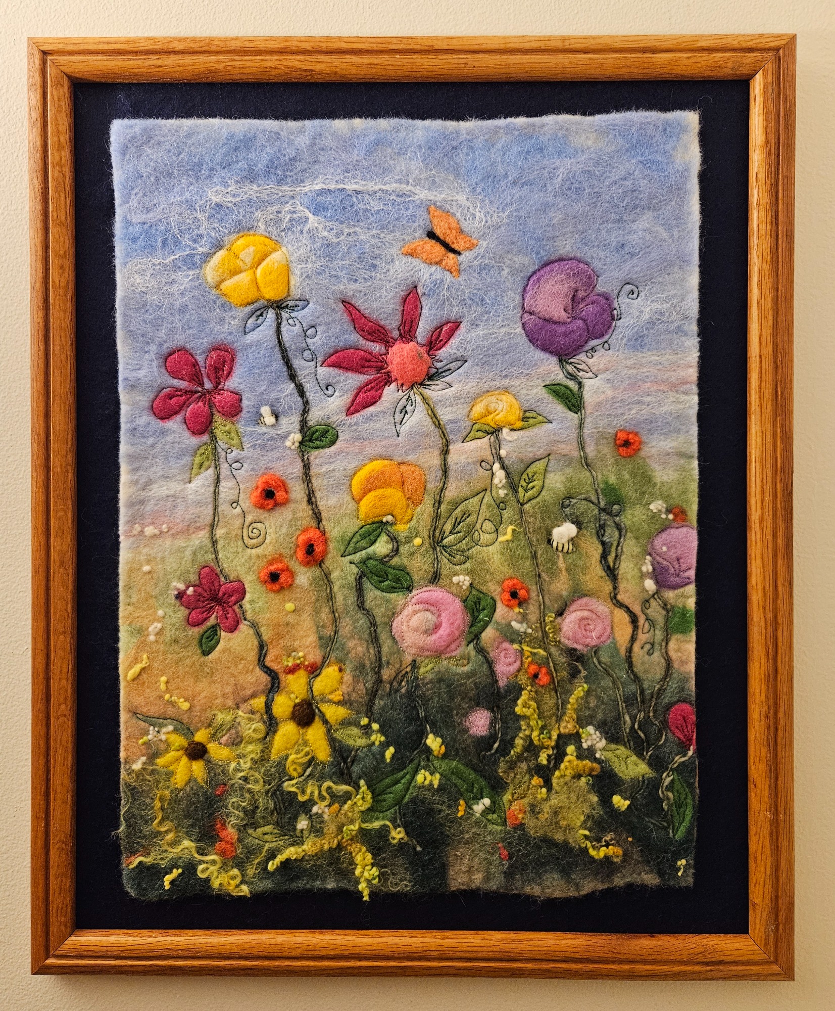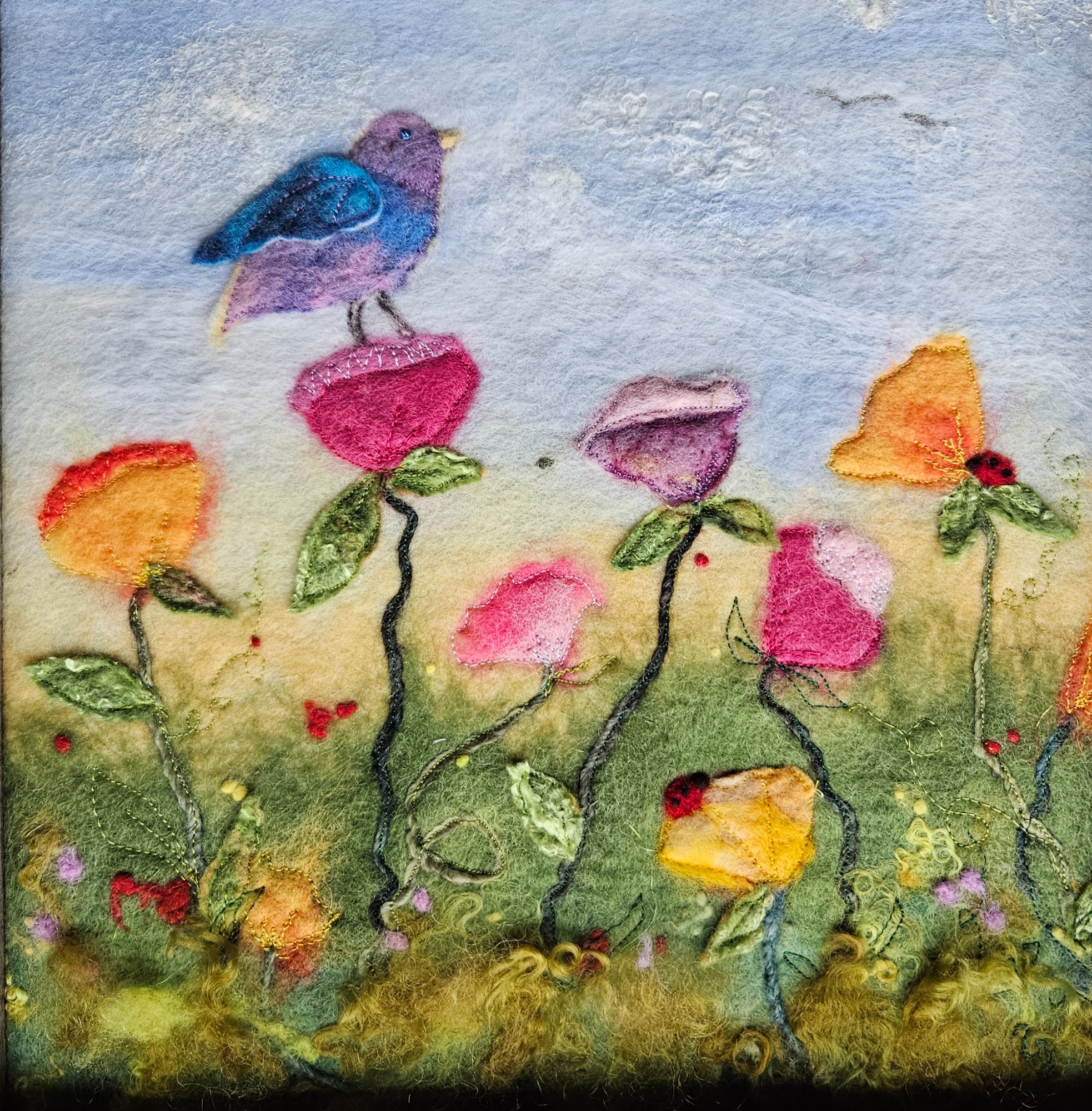 My wool paintings are created using both a wet felting and needle felting process. Some paintings are a single technique and others use both.